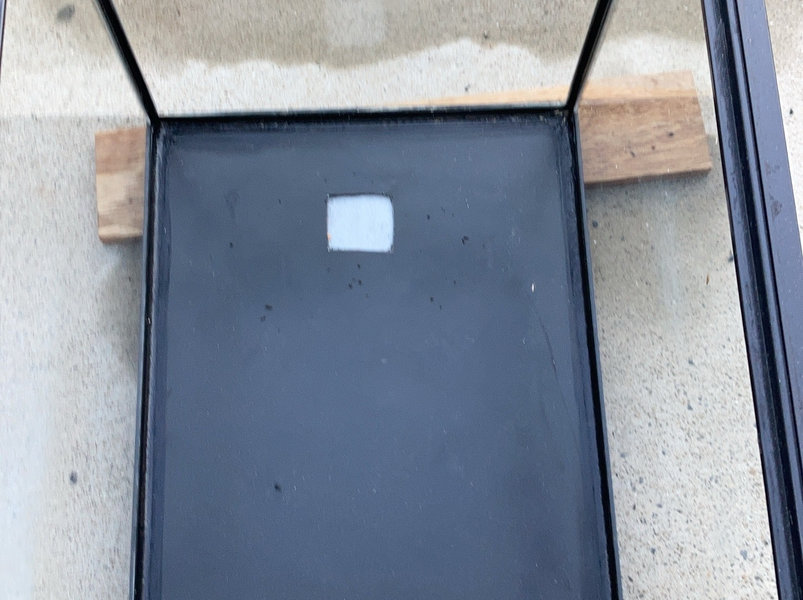 穴あけ時にガラスへ小さなヒビが入ってしまったため、パッキンとガラスの間に1mm厚の塩ビ板を挟み、シリコンで防水処理を行いました。
