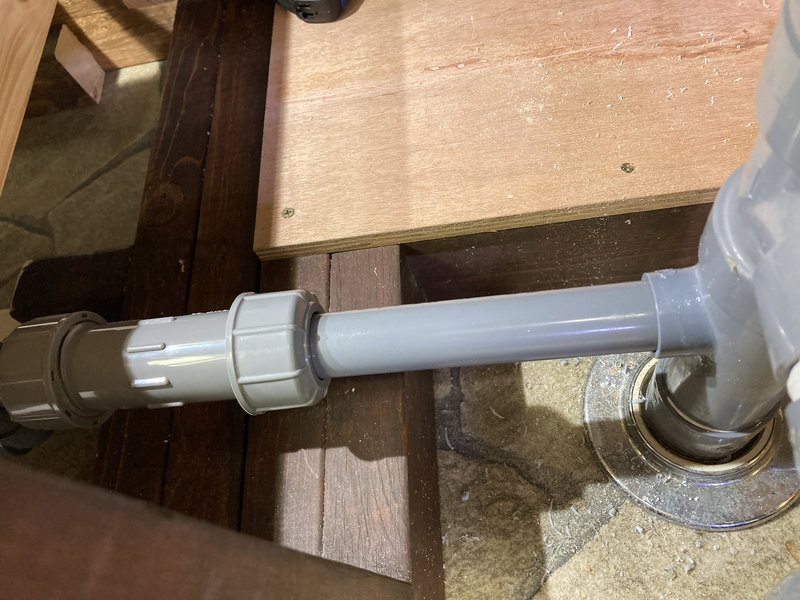 この配管の長さによって排水量を調整できるため、好みに合わせて長さを変更すると良いと思います。