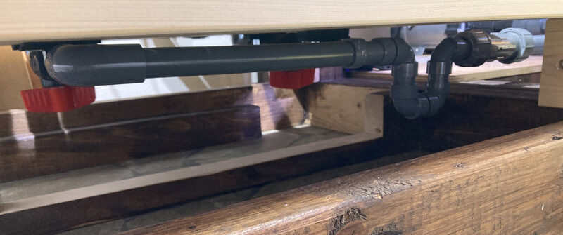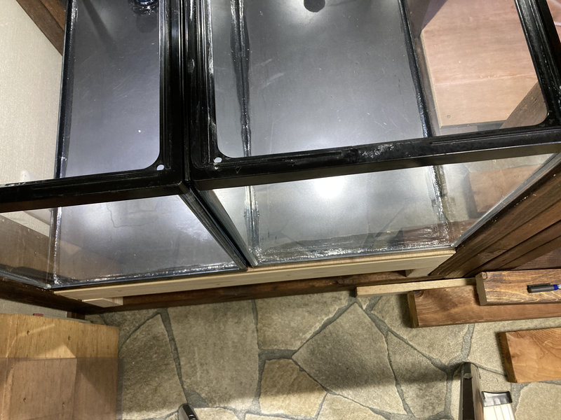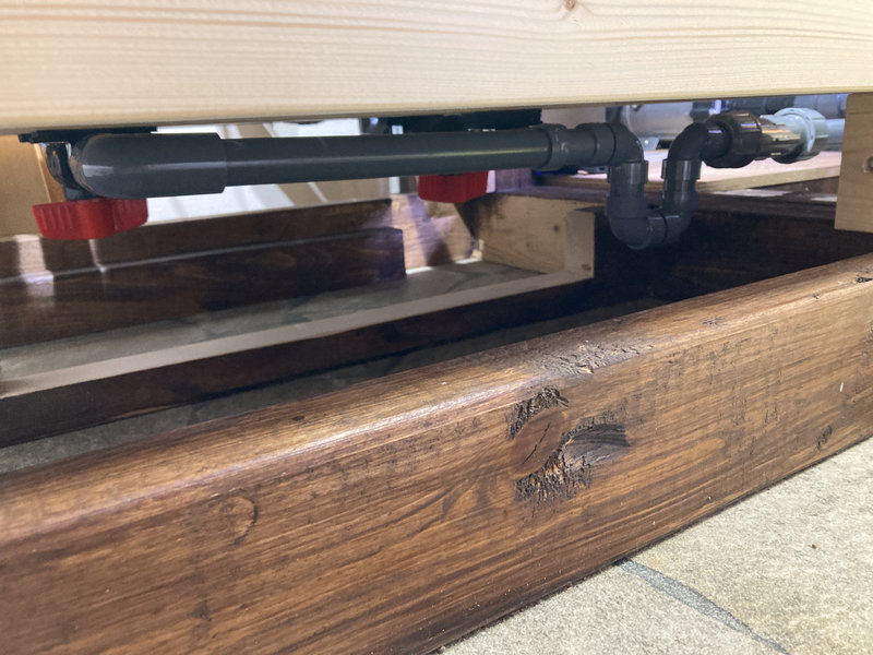 バルブを開閉する際、水槽台の一部と手が干渉して操作しにくかったため、台の一部を切り取りました。
