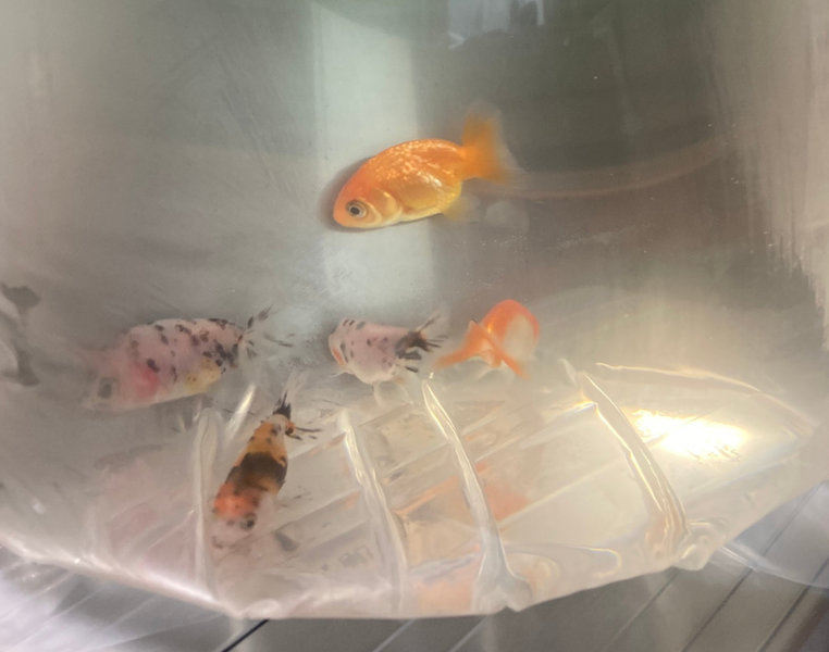 無加温で管理されていたため、いきなり水槽に浮かべて水合わせをすると金魚への負担が大きいと言われました。袋のまま室内に置き、水温を室温と同じにしてから水槽へ浮かべ、水合わせを始めました。
