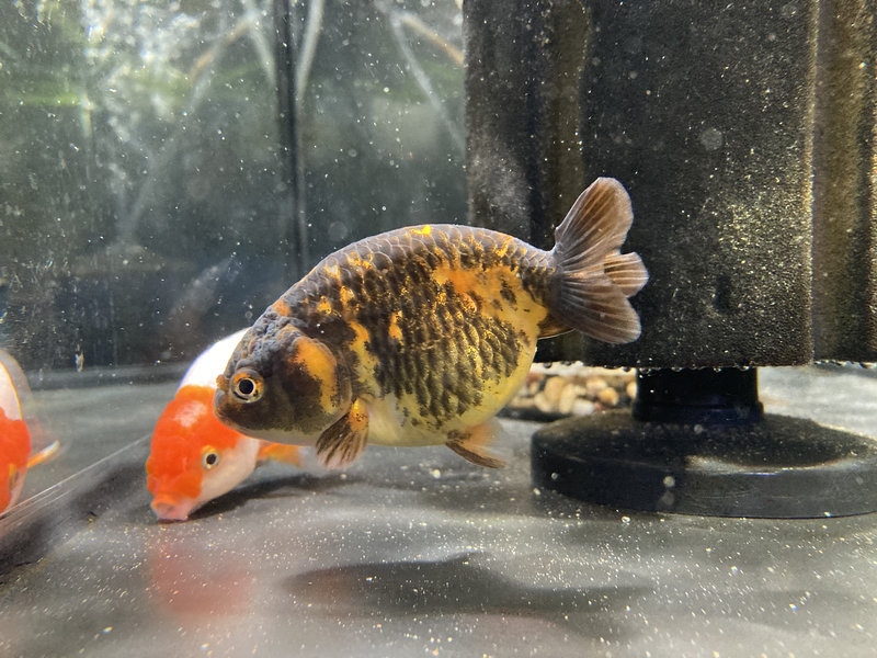 このらんちゅうは大きな子達と同じくらいの大きさだったので混泳させています。