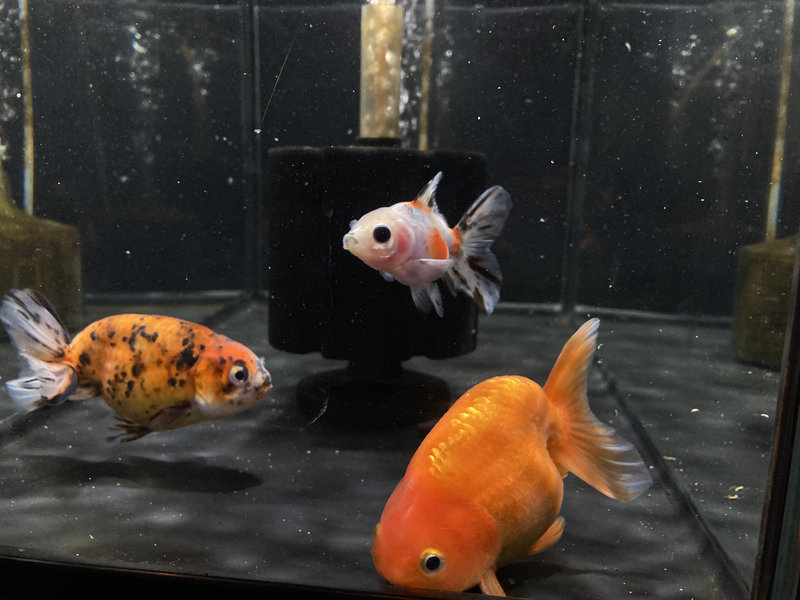 600×300×360にローズテール東錦を1匹飼育しているのも寂しいと思い、江戸錦と志村産らんちゅうを購入しました。