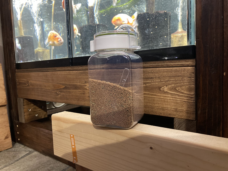 これらの餌を保存用容器に移し、混ぜて使用しました。