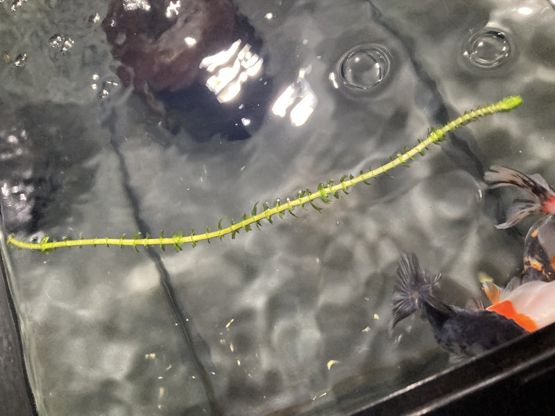 近所の用水路で採取してきたアナカリスを浮かべました。